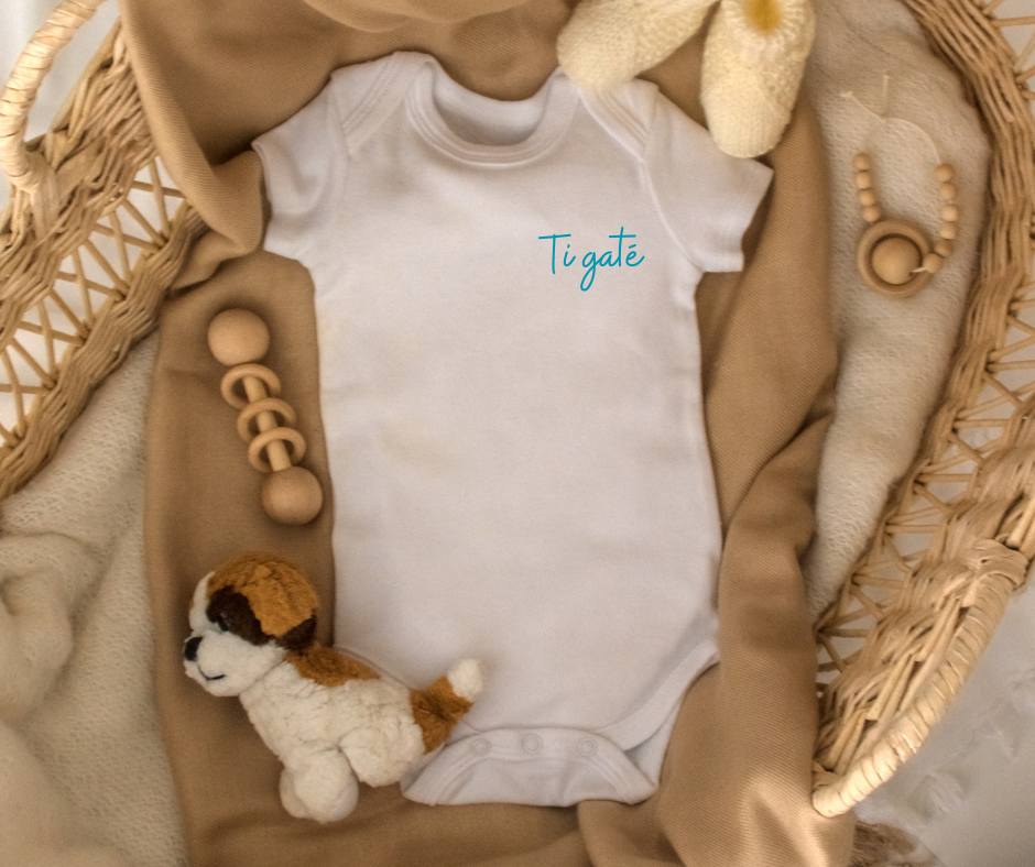 Le body « ti gaté » viens compléter notre collection de body en l’honneur de notre culture réunionnaise